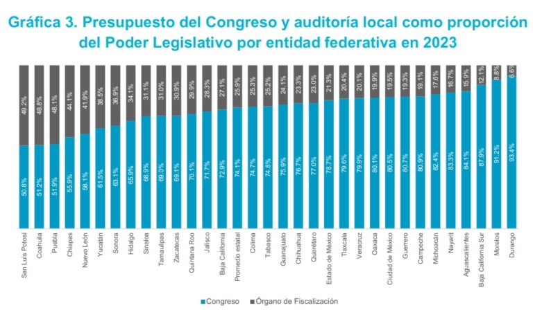 San Luis Potosí otorga 49.2 por ciento de su ejercicio fiscal anual a su órgano de fiscalización, mientras que Durango, el 6.6 por ciento.