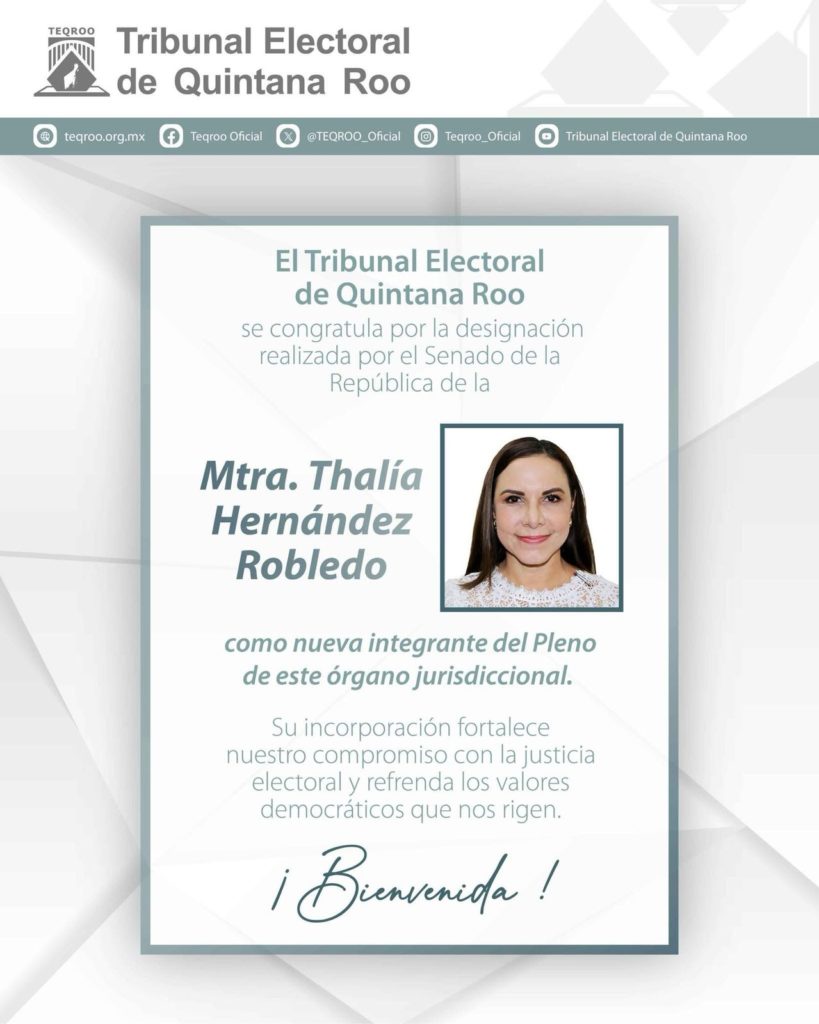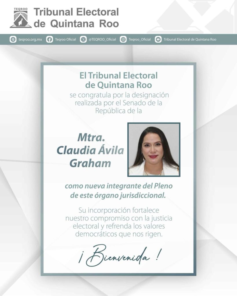 En el caso de Quintana Roo por lo que Thalía Hernández Robledo y Claudia Ávila Graham, exconsejera y consejera del Instituto Electoral de Quintana Roo (Ieqroo) fueron designadas como magistradas del Teqroo.