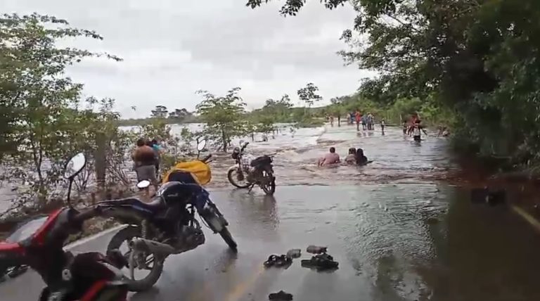 BACALAR, QR.- Al menos ocho comunidades de este municipio están en riesgo de incomunicación. El agua ha llegado hasta los 70 centímetros sobre el nivel de las carreteras en los accesos. Mientras que en ranchos y parcelas el nivel es de más de un metro de altura, además de que las corrientes son fuertes.