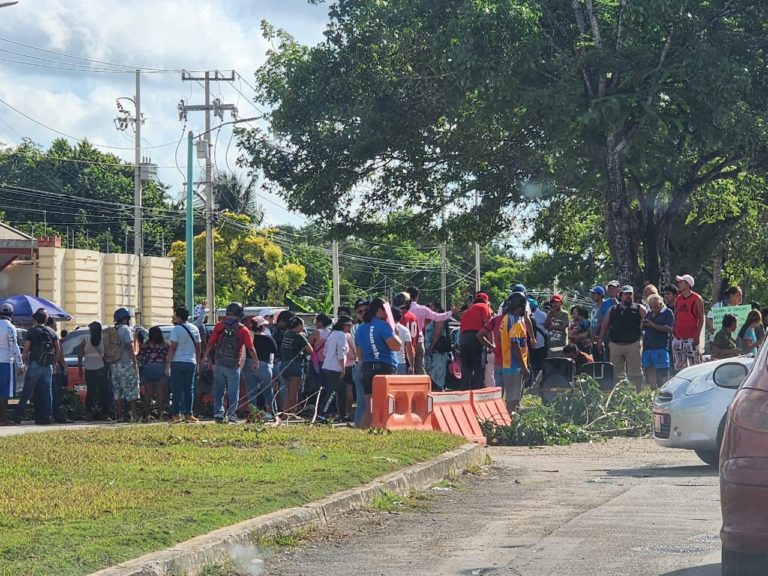 CHETUMAL, QR.- Decenas de habitantes de la colonia Fraternidad Antorchista bloquearon uno de los accesos a la ciudad, debido a que las obras del Tren Maya han destruido las calles de terracería y exigen la reparación.
