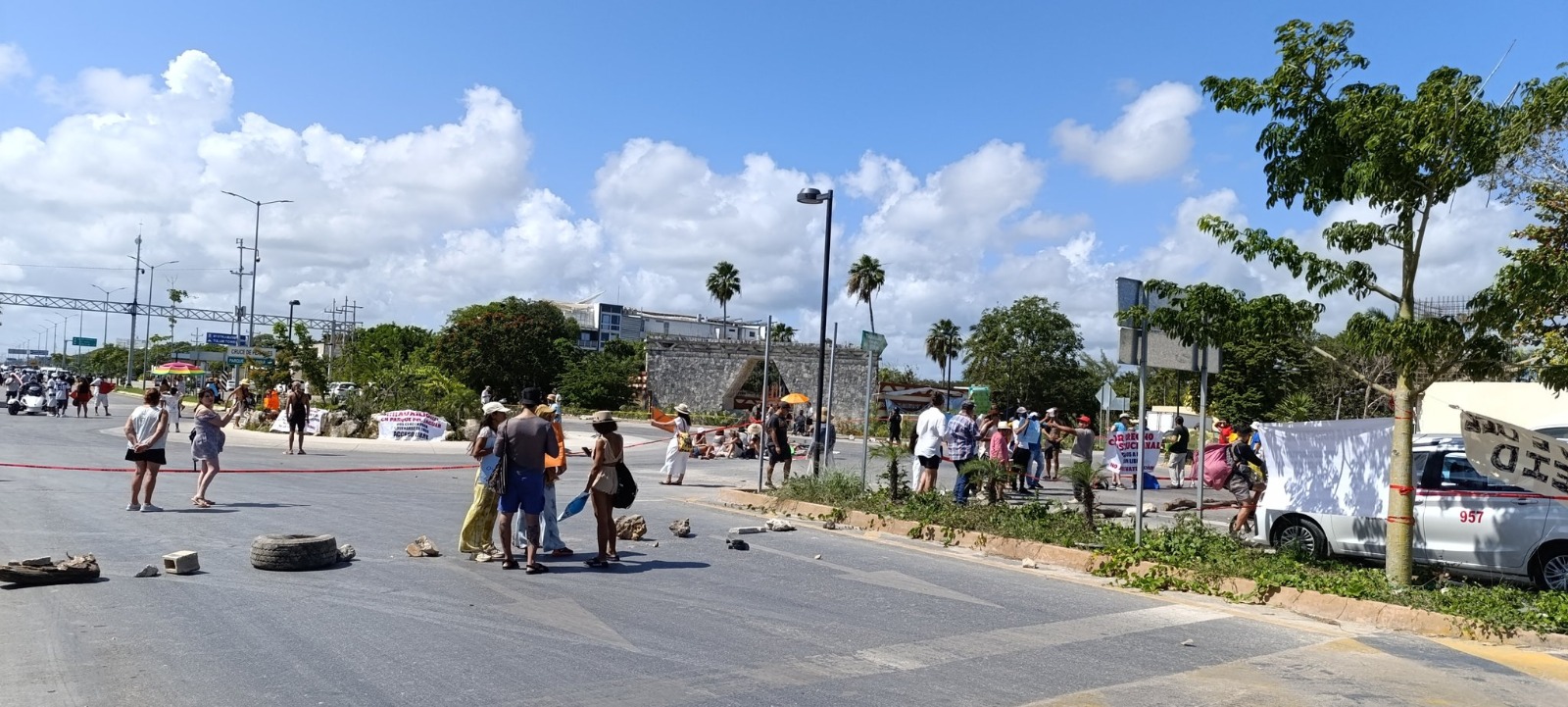 Alrededor de las 9 de la mañana, un grupo de aproximadamente 40 personas, entre touroperadores y extranjeros radicados en Tulum, se sentaron en el asfalto de la carretera para evitar el paso de vehículos.