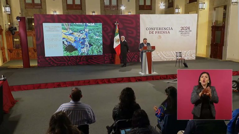 - CDMX.- En la conferencia matutina en Palacio Nacional, el secretario de Comunicaciones y Transportes, Jorge Nuño Lara, informó sobre el avance del puente lagunar Nichupté en Cancún. Esta infraestructura busca conectar el centro de la ciudad con la zona hotelera, extendiéndose a lo largo de 9 kilómetros e incluyendo dos entronques.