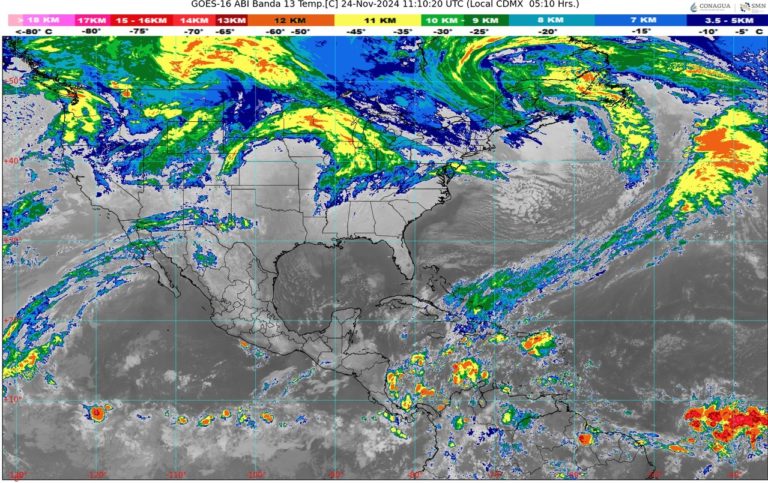 Para la Península de Yucatán, este domingo el SMN prevé cielo medio nublado a nublado durante el día. Por la mañana, ambiente fresco; durante la tarde, ambiente cálido, con probabilidad de chubascos en Quintana Roo y lluvias aisladas en Campeche y Yucatán. Viento de componente este de 10 a 25 kilómetros por hora en la región, con rachas de 40 kilómetros por hora en zonas costeras.