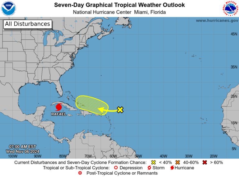 El Centro Nacional de Huracanes del Servicio Nacional de Meteorología en Miami informó sobre las condiciones tropicales en el Atlántico Norte, el Mar Caribe y el Golfo de México en su último reporte. Actualmente, el organismo mantiene activas las advertencias relacionadas con el Huracán Rafael, el cual se localiza en el noroeste del Mar Caribe.