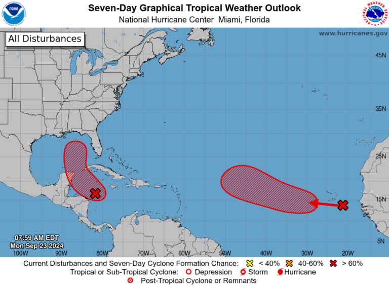 El Centro Nacional de Huracanes (CNH) emitió un informe sobre las condiciones meteorológicas en el Atlántico Norte, el Caribe y el Golfo de México. Un área de baja presión en el noroeste del Mar Caribe está generando lluvias y tormentas eléctricas, con probabilidades altas de desarrollarse en una depresión o tormenta tropical en las próximas 48 horas. Las condiciones ambientales son favorables para el desarrollo de este sistema, que se desplazará hacia el norte, impactando el sureste del Golfo de México.