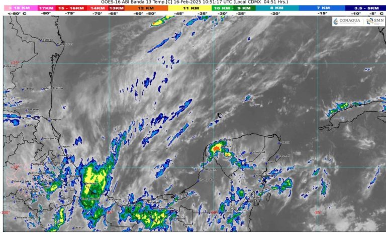 El viento cambiará de dirección con el avance del sistema frontal. Por la mañana, el flujo será del sureste con velocidades de 10 a 25 km/h. Hacia la tarde y noche, el evento de “Norte” generará rachas de 40 a 60 km/h en Campeche y Yucatán, con un rango de viento sostenido de 20 a 30 km/h.