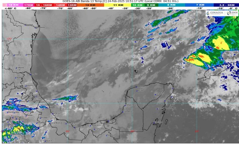 Las lluvias más intensas de las últimas 24 horas se registraron en Benito Juárez, Quintana Roo, con un acumulado de 13 mm, seguido de Candelaria, Campeche, con 1 mm. En cuanto a temperaturas, Mérida alcanzó los 34.8 °C, ubicándose en el tercer lugar a nivel nacional.
