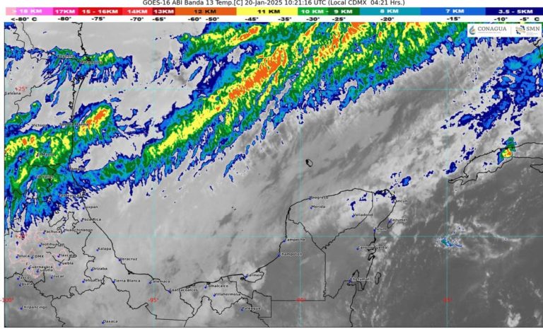 CANCÚN, QR.- La Coordinación Estatal de Protección Civil reporta que el frente frío número 24 permanecerá estacionario en la porción norte de la Península de Yucatán, afectando las condiciones meteorológicas de Quintana Roo.