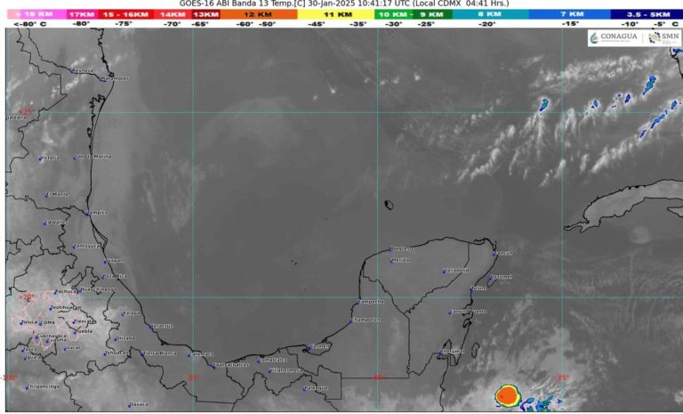 Para la jornada, se espera cielo parcialmente nublado. En la mañana, el ambiente será fresco en la región y templado en las zonas costeras. Durante la tarde, las temperaturas aumentarán, con registros de calurosos a muy calurosos y presencia de chubascos en Campeche y Quintana Roo, mientras que en Yucatán se prevén lluvias de menor intensidad.