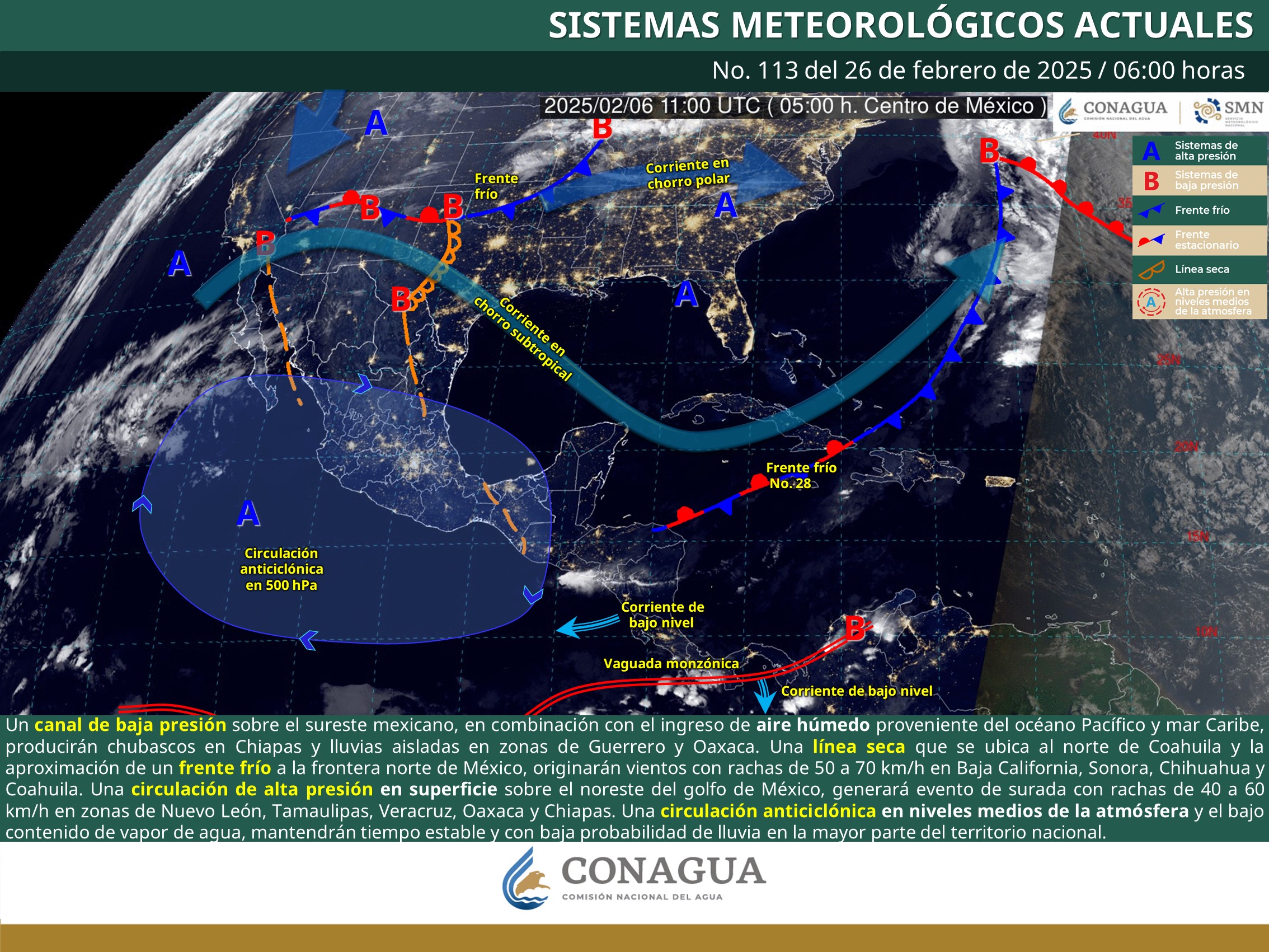 Las probabilidades de lluvia son bajas, mientras que las temperaturas oscilarán entre cálidas y calurosas en el transcurso del día, con valores más templados a frescos en la mañana. Se prevé viento con rachas de hasta 40 kilómetros por hora, principalmente en las zonas costeras del estado.