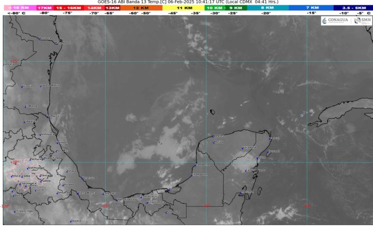 Una circulación anticiclónica en niveles medios de la atmósfera influirá en el incremento de temperaturas en la zona. Durante el último registro, Felipe Carrillo Puerto, Quintana Roo, alcanzó 33.4 °C, ubicándose en el séptimo lugar a nivel nacional, seguido de Mérida, Yucatán, con 33.2 °C.