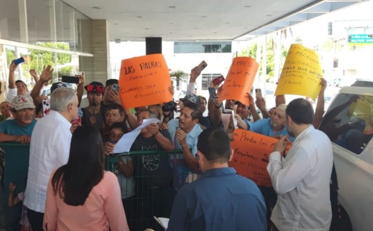 Un grupo estaba conformado por los habitantes de los asentamientos irregulares “Las Palmas”, “Los Palomos” y “Mahahual”. En este caso exigían la regularización de sus predios, así como de apoyos para avanzar a una vida digna.