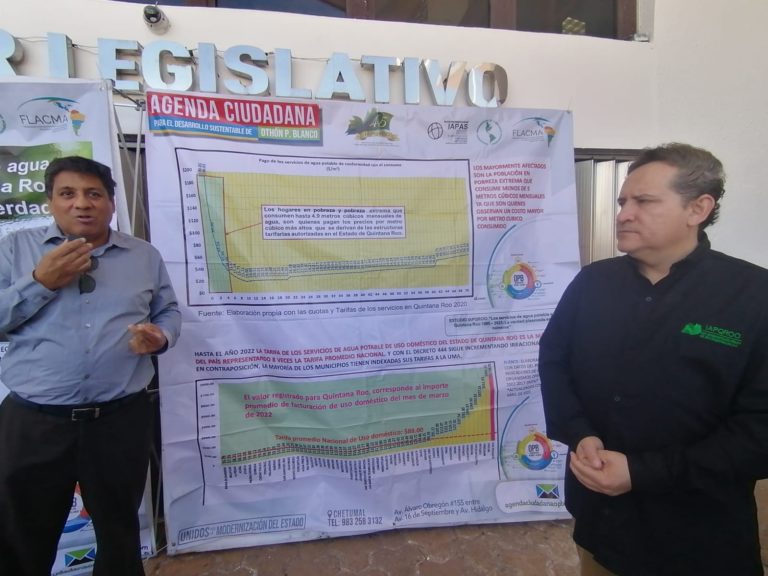 El estudio elaborado por Castillo Pinzón denominado “Las Tarifas de Agua en Quintana Roo”, fue presentado el pasado 27 de diciembre. En el se evidenció un sobreprecio del agua. El 12 de enero de 2024 se presentó una iniciativa ciudadana para reformar 12 artículos de la Ley de Cuotas y Tarifas de Agua Potable y Alcantarillado, Tratamiento y Disposición de Aguas Residuales del Estado de Quintana Roo.