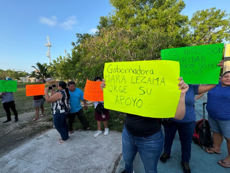 CHETUMAL, QR.- Padres de familia de la primaria Centenario de la Revolución realizaron una manifestación luego de que les fue cancelada la construcción de un domo del programa anunciado por la gobernadora Mara Lezama.