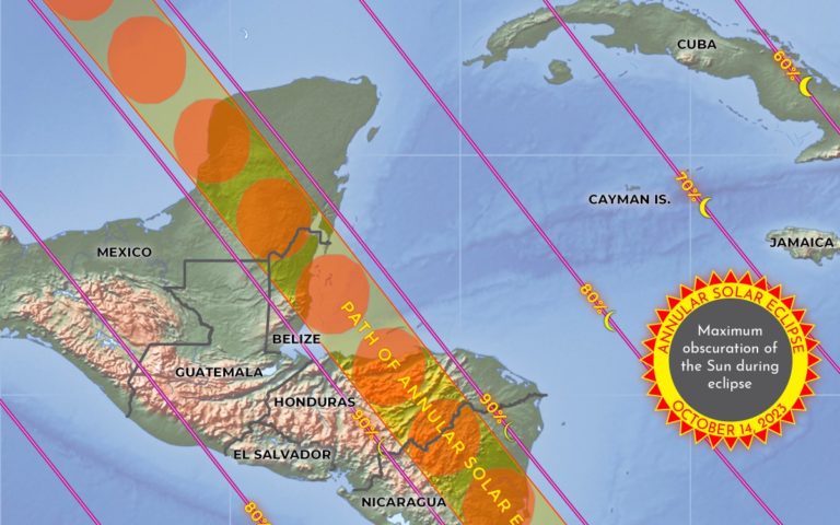 Quintana Roo será uno de los lugares privilegiados para observar el eclipse solar anular, con Chetumal ofreciendo una oscuridad del 90.5%; comenzará a las 9:51 de la mañana y concluirá a la 1:17 de la tarde.