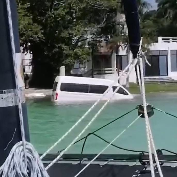 El incidente ocurrió cerca de las 2 de la tarde, cuando la Van terminó dentro de la laguna tras una mala maniobra en la rampa del Cenote Esmeralda, según un video que circuló en redes sociales.