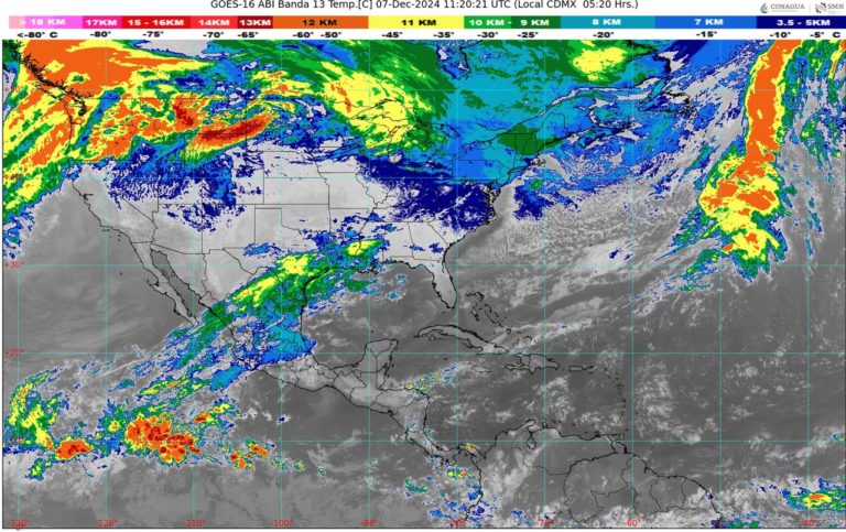 Por regiones, en la Península de Yucatán el SMN prevé cielo medio nublado a nublado durante el día, con lluvias aisladas en la región.
