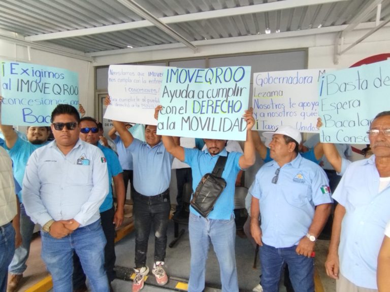 CHETUMAL, QR.- Taxistas de Bacalar y Mahahual se manifestaron en las instalaciones del Instituto de Movilidad de Quintana Roo (Imoveqroo), para exigir concesiones de servicio público, además de un módulo del organismo para realizar trámites. Personal de la dependencia estatal atendió a los inconformes.