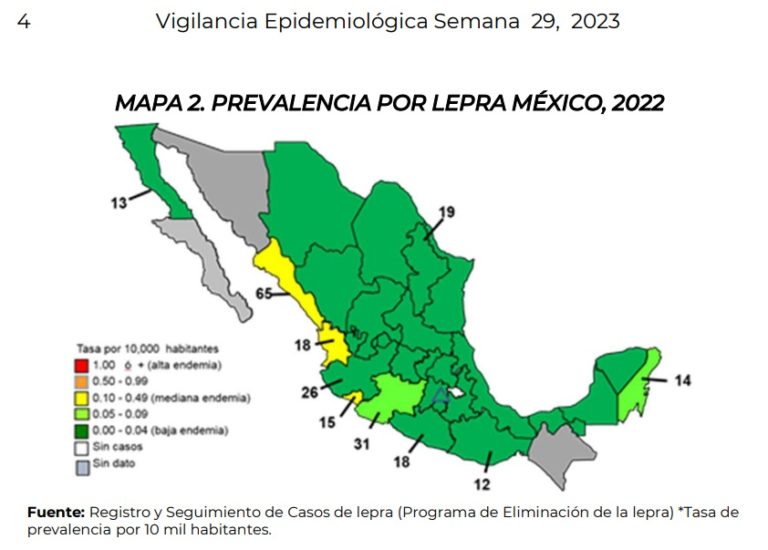 La Secretaría de Salud del Gobierno de México lanzó una alerta para siete estados, en cuyas demarcaciones se ubican 12 municipios del país en donde los casos de lepra han crecido exponencialmente, de acuerdo con la Dirección de Epidemiología.