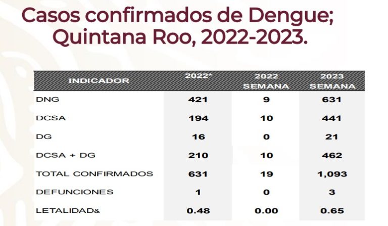 También te puede interesar: Prevén que Quintana Roo supere 2 mil 200 casos de dengue en 2023