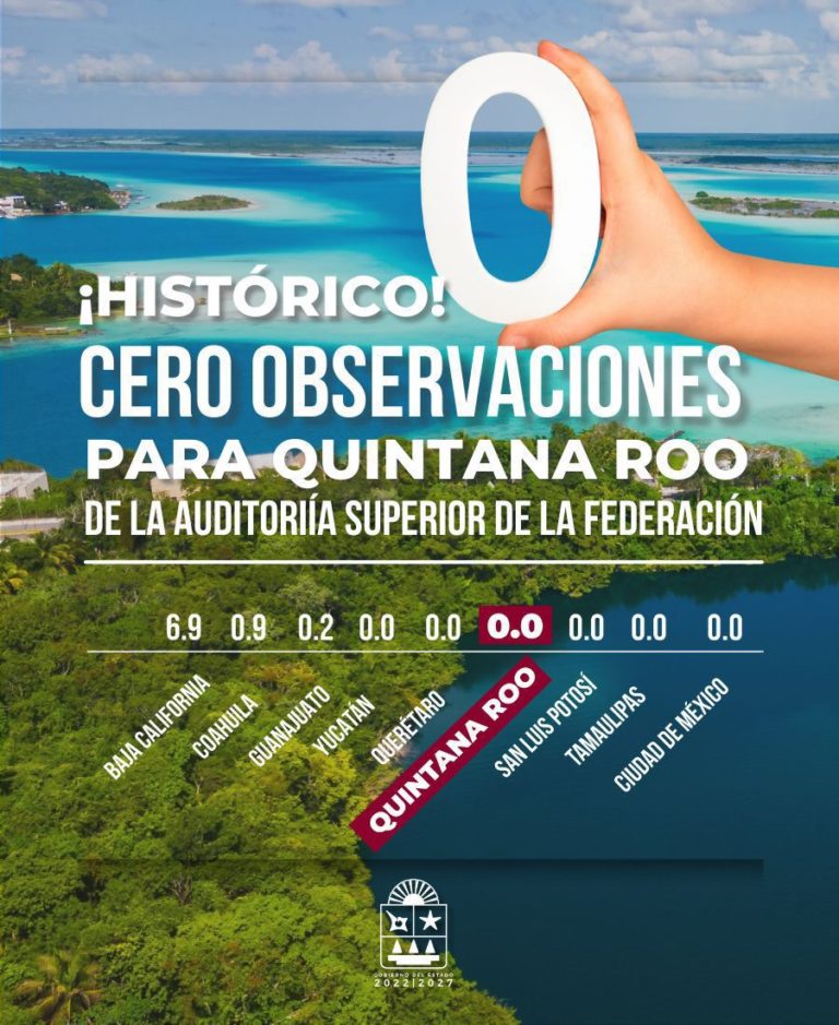 CHETUMAL, QR.- La gobernadora de Quintana Roo, Mara Lezama Espinosa, informó que, por primera vez en la historia del estado, la administración estatal no recibió observaciones de la Auditoría Superior de la Federación (ASF) en 2023.