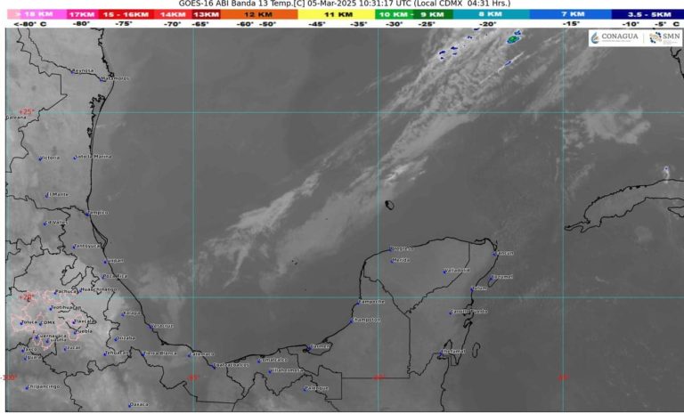 Las temperaturas máximas alcanzarán entre 35 y 40 grados Celsius en los tres estados de la península. En Campeche, se registró el día de ayer una máxima de 38.6 grados Celsius, colocándose en el cuarto lugar a nivel nacional.