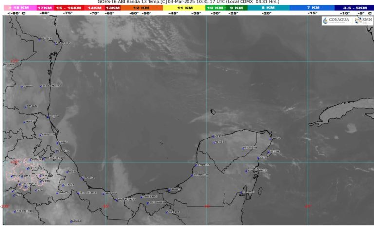 Para la región de la Península de Yucatán, se espera cielo con nubosidad dispersa y sin precipitaciones. Durante la mañana, el ambiente será fresco a templado, mientras que por la tarde se pronostican condiciones cálidas en Quintana Roo y calurosas en Campeche y Yucatán.