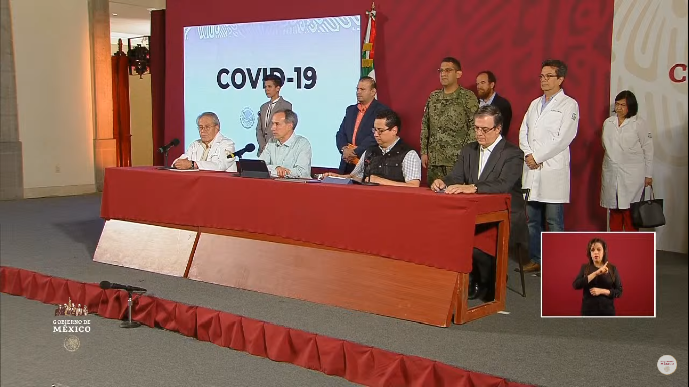 En la conferencia de prensa en Palacio Nacional que presidió Hugo López Gatell, subsecretario de Prevención y Promoción, y el canciller Marcelo Ebrard Casaubón, además de funcionarios de alto nivel del Gobierno de México. López-Gatell hizo un llamado a la población para quedarse en casa en un periodo de un mes y evitar que los contagios sigan creciendo.