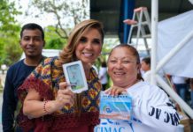CANCÚN, QR.- La presidenta municipal de Cancún, Ana Paty Peralta, presenció la entrega de 300 máquinas de coser a mujeres beneficiarias del programa “Faro del Bienestar”, en una ceremonia encabezada por la gobernadora de Quintana Roo, Mara Lezama.