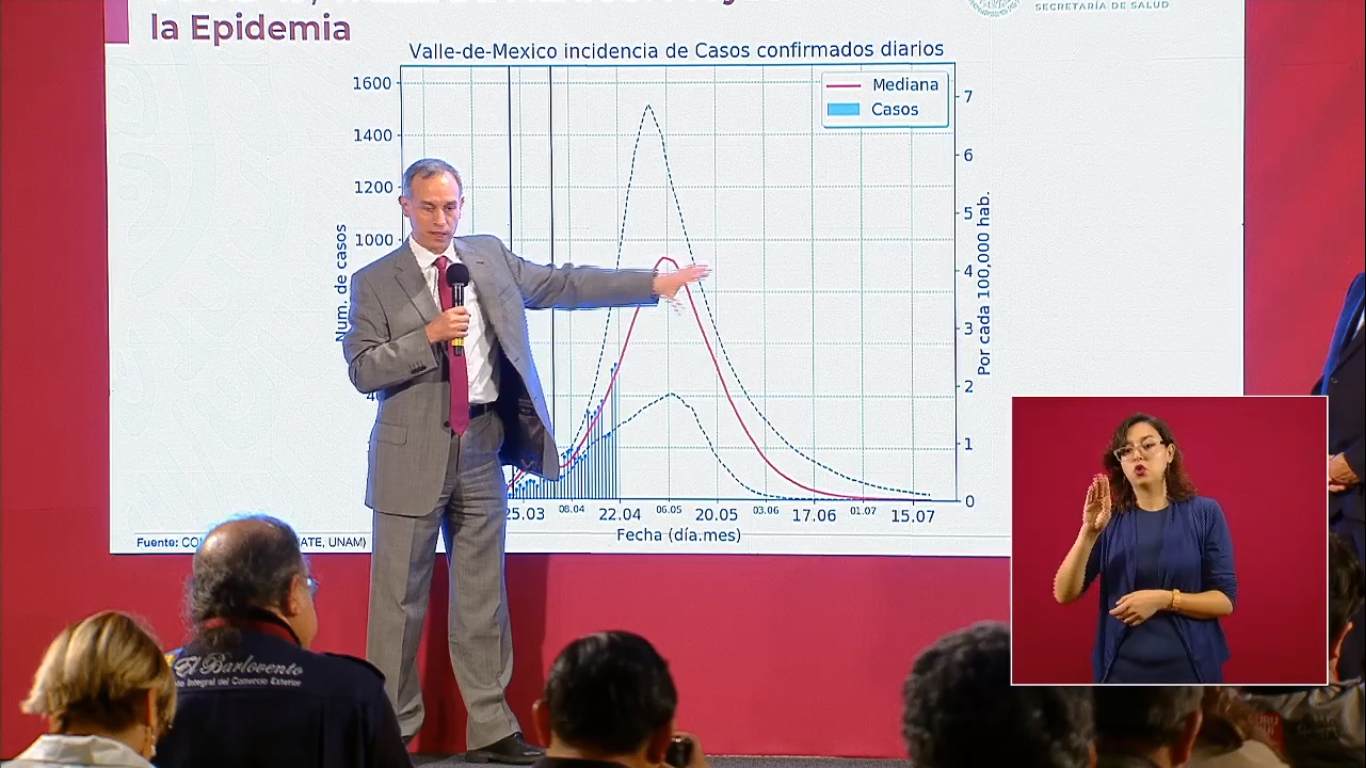 El funcionario de Salud tomó como ejemplo, para las cinco ciudades, la curva epidémica de la Ciudad de México (CDMX), la cual es replicable para otras partes del país, en especial en las de mayor foco de concentración de la pandemia. La predicción de las fechas estará sujeta, dijo, al comportamiento de la población de quedarse en casa.
