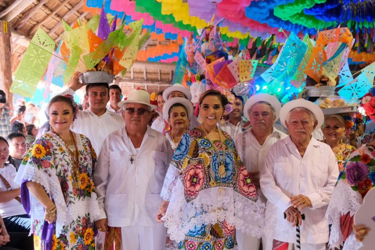 Después de participar en la tradicional vaquería con el Baile de la Cabeza de Cochino, la gobernadora Mara Lezama expresó su satisfacción por estar en la celebración en El Cedral y compartir con las familias cozumeleñas y quintanarroenses este momento que mantiene vivas las tradiciones que pertenecen al lenguaje del alma y que son parte integral de la cultura e identidad cozumeleña.