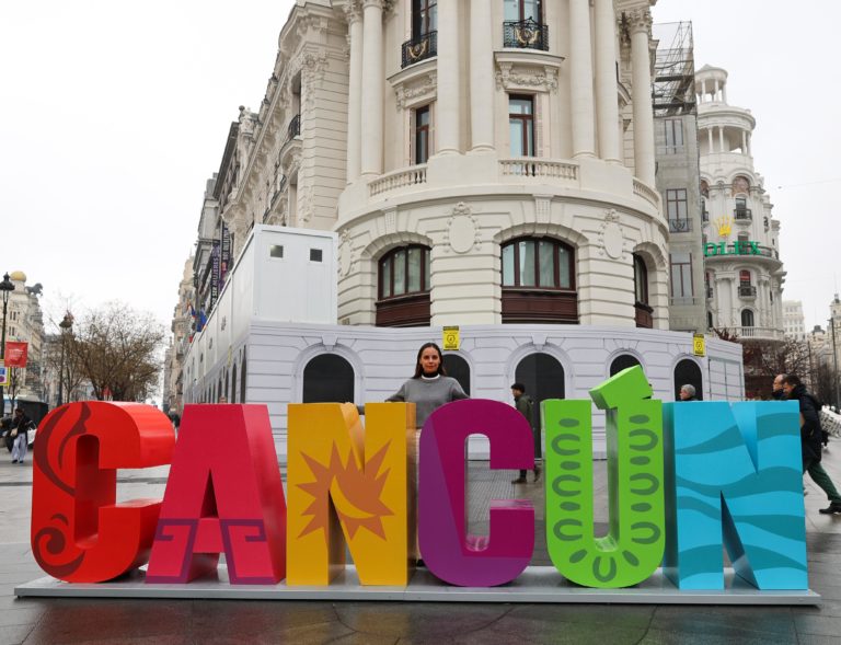 Cancún destaca con la instalación de sus emblemáticas letras en la Gran Vía, uno de los sitios más icónicos de la capital española.