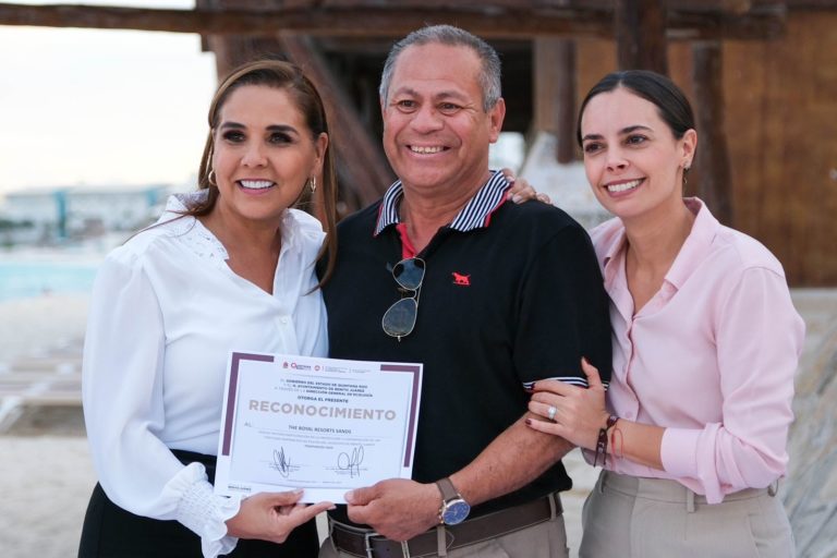 Acompañada de la presidenta municipal de Benito Juárez, Ana Paty Peralta de la Peña, la mandataria estatal entregó los primeros 7 de 170 reconocimientos a dependencias, instituciones académicas, hoteles, asociaciones civiles y empresas.