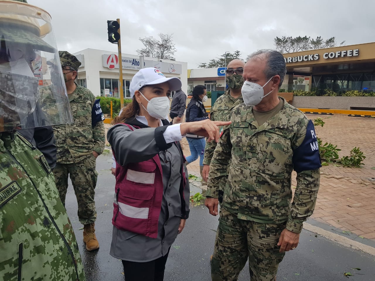 CANCÚN, QRoo.- En cuanto lo permitieron las condiciones climáticas derivadas del Huracán “Delta” en categoría 2, la presidente municipal de Benito Juárez, Mara Lezama, acudió al auxilio de la población en las zonas inundables de la ciudad, además que verificó personalmente incidentes y daños en las 12 playas del municipio, en compañía de la Coordinadora de Protección Civil, Laura Velázquez; el titular de la Secretaría de Marina, José Rafael Ojeda Duran, y elementos de la Guardia Nacional,