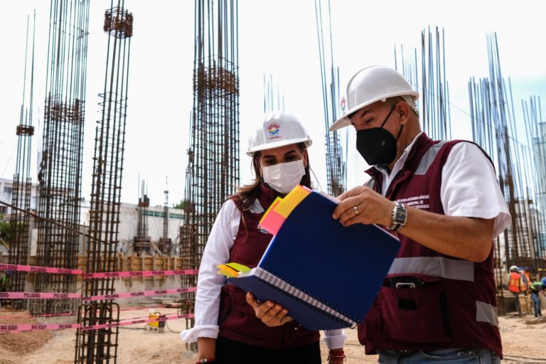 CANCÚN, QR.- Como parte de la recuperación del centro de la ciudad, autoridades municipales supervisaron el avance de la construcción del Teatro de la Ciudad.