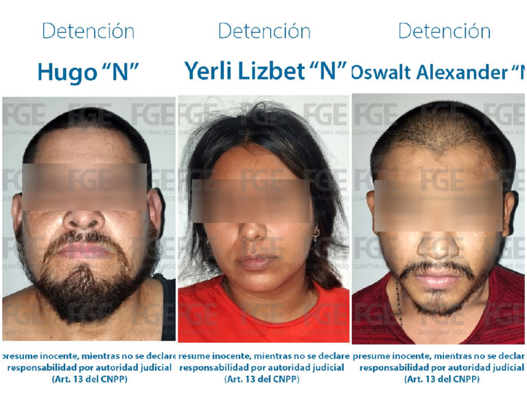 Tras diversas labores de inteligencia, tecnología y de gabinete, informa un comunicado de prensa, la Policía de Investigación logró el aseguramiento, en la calle Lázaro Cárdenas de la delegación Alfredo V. Bonfil, de Hugo “N” y Yerli Lizbeth “N”, cuando circulaban a bordo de una camioneta marca JAC tipo SEA; Oswalt Alexander “N” fue capturado a bordo de una motocicleta.