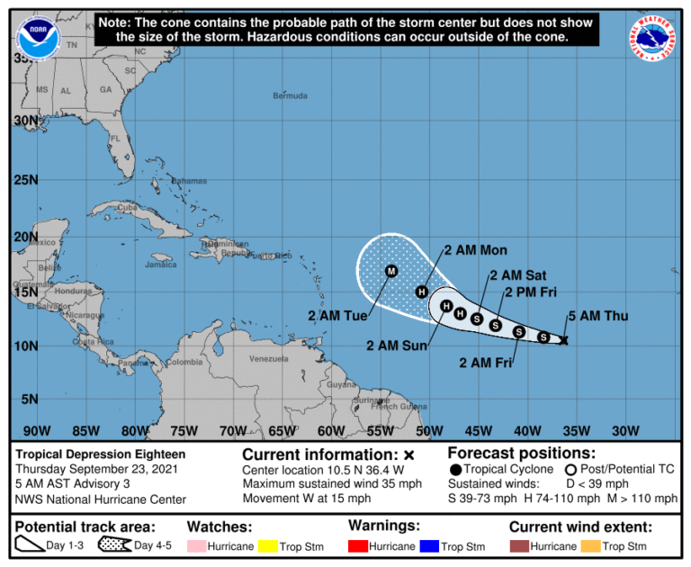 De convertirse en tormenta, la actual depresión se llamaría Sam, según el listado de nombres del NHC para la temporada de 2021.