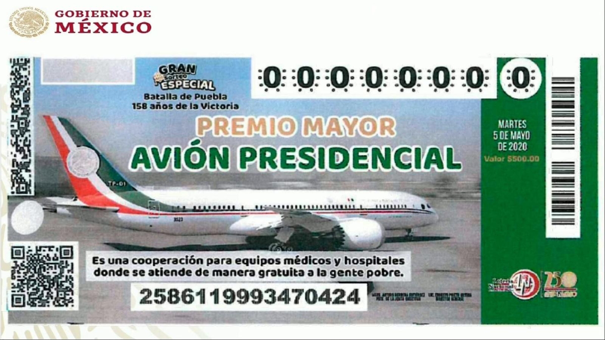 El pasado 8 de febrero, López Obrador dio a conocer que se rifarían 100 premios de 20 millones de pesos que serían destinados en la compra de equipo médico para hospitales públicos. El jefe del Ejecutivo federal fijó la fecha del 15 de septiembre como el día del sorteo. Precisó en aquel momento en Palacio Nacional que serían 6 millones de cachitos con un precio de 500 pesos cada uno, para obtener 3 mil millones de pesos. La rifa del avión ya no se hizo, como lo había anunciado originalmente. La aeronave estará bajo cuidado de la Fuerza Aérea.