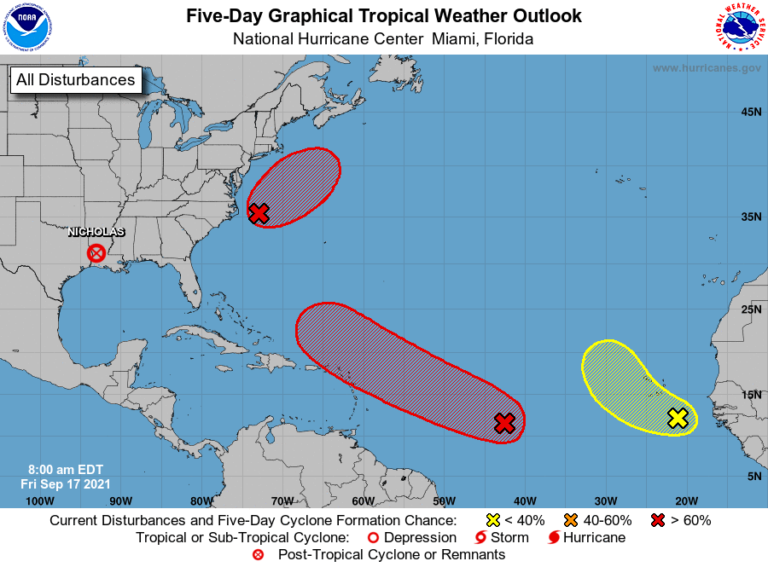 Otra zona de baja presión mantiene 10 por ciento de posibilidad para desarrollo ciclónico en 48 horas y 20 por ciento en cinco días. Se ubica al sureste de las islas Cabo Verde.