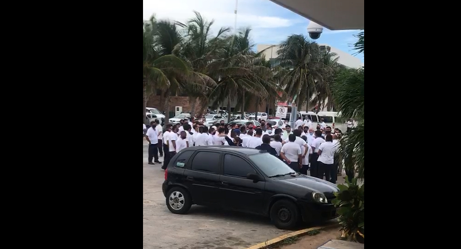 CANCÚN, QRoo.- La tarde de hoy, en el bulevar Kukulcan, un taxista fue detenido por elementos de la Policía Turística, por agredir a un conductor de la plataforma Uber. Sus compañeros presionaron a la autoridad, pero el martillo fue puesto a disposición de la autoridad competente.