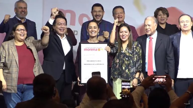 CIUDAD DE MÉXICO.- Con la presencia de gobernadores de extracción morenista y de los nueve coordinadores de la Defensa de la Cuarta Transformación, además de diputados y senadores y líderes nacionales de los partidos Morena, PT Y PVEM, Claudia Sheinbaum Pardo fue designada como precandidata única por la coalición a la Presidencia de la República.