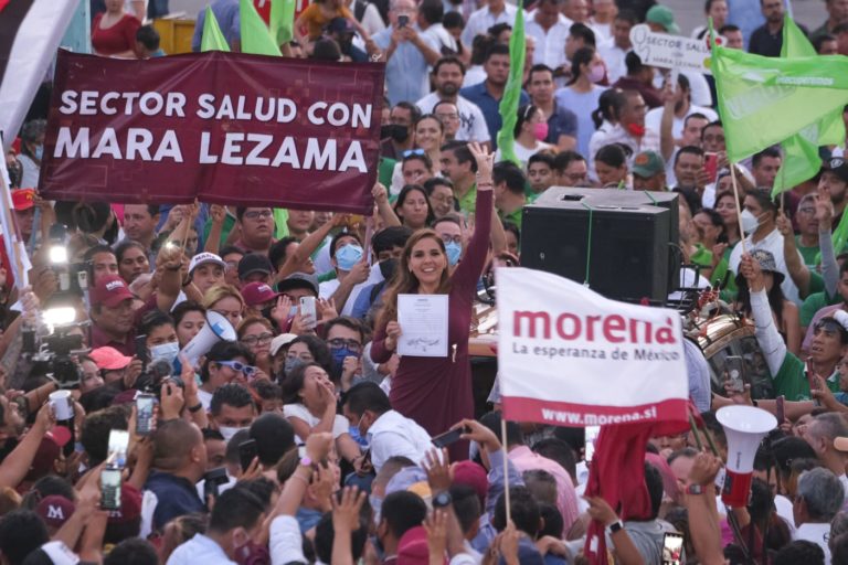 “Estamos haciendo historia, por primera vez en Quintana Roo, una mujer de ustedes, del pueblo, una mujer de Morena, de izquierda, una luchadora social, nos avalan 41 puntos arriba del segundo lugar. Morena no sólo ganó sino que arrasó con el 57 por ciento de la preferencia electoral, la más amplia de todo el país en las elecciones pasadas”, dijo