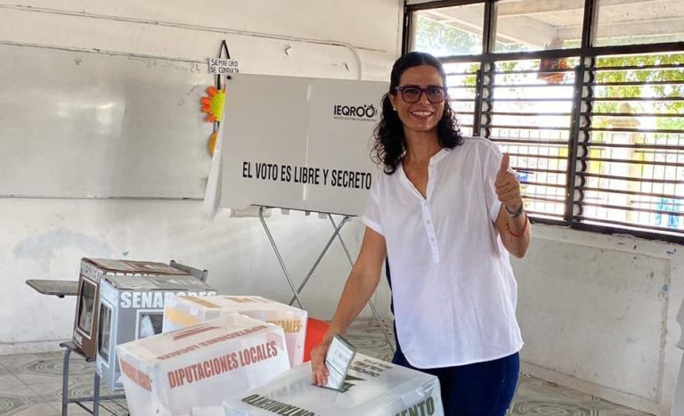 BACALAR, Q.R– Después de presentarse esta mañana para ejercer su voto, la candidata a la presidencia municipal por la coalición “Fuerza y Corazón por Quintana Roo”, Tania Casa Madrid, se dirigió a los medios de comunicación presentes, donde compartió un mensaje claro sobre la importancia de votar sin miedo.