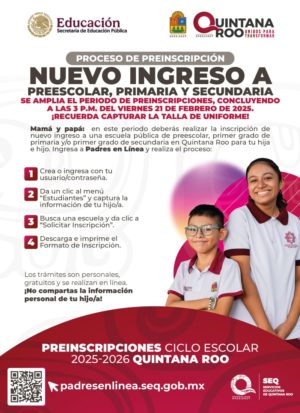 La preinscripción alcanza 81% en preescolar; 93%, en primaria y 101%. en secundaria; SEQ garantiza espacios suficientes.